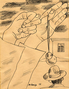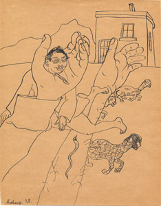 Grégoire Michonze Real name: Grigore Michonznic Born 22 March 1902 in Kichnieff, Bessarabia (which was incorporated into Romania in 1918, and is now in Moldova). Died 29 December, 1982, in Paris. Michonze was a Romanian Jew (his mother’s family were rabbis) who worked with VICTOR BRAUNER as an assistant set designer at the National Theatre in Bucharest. He left for Paris in 1922, where he became a close friend of Henry Miller, ILARIE VORONCA, and BENJAMIN FONDANE. He also designed a theatrical revue in Paris. He is generally remembered as a Surrealist painter, though not all of his work was in that style. The Foundation has several works by MICHONZE in its collection, including two Surrealist drawings dating from 1928, a self portrait in charcoal from 1971, and some later oil paintings.